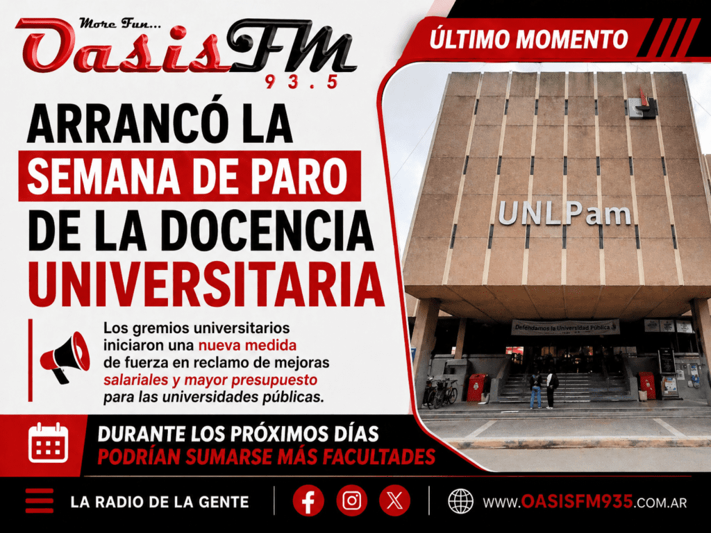 La medida -que alcanza a la Universidad Nacional de La Pampa- articula a la docencia, estudiantes y distintos actores del sistema universitario público, que denuncian un progresivo deterioro de las condiciones salariales y presupuestarias.