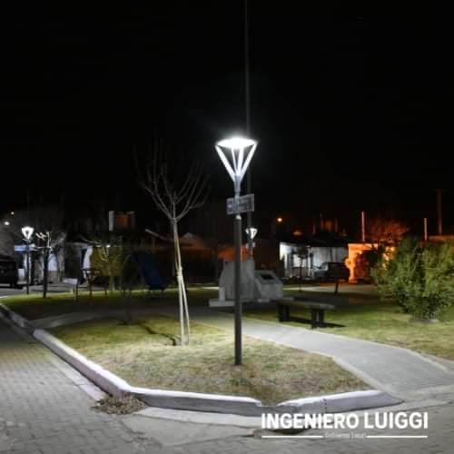 Ingeniero Luiggi: El Gobierno local continúa con la iluminación LED en este caso en la la plaza Güemes del barrio FONAVI VI.