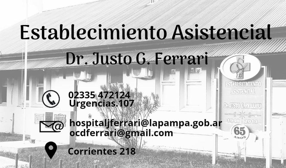 El hospital Justo G. Ferrari de Ingeniero Luiggi informa que ante caso positivo de covid-19 en nuestra localidad, comunica que se encuentra suspendido la atención por consultorio, laboratorio, RX, hasta nuevo aviso.