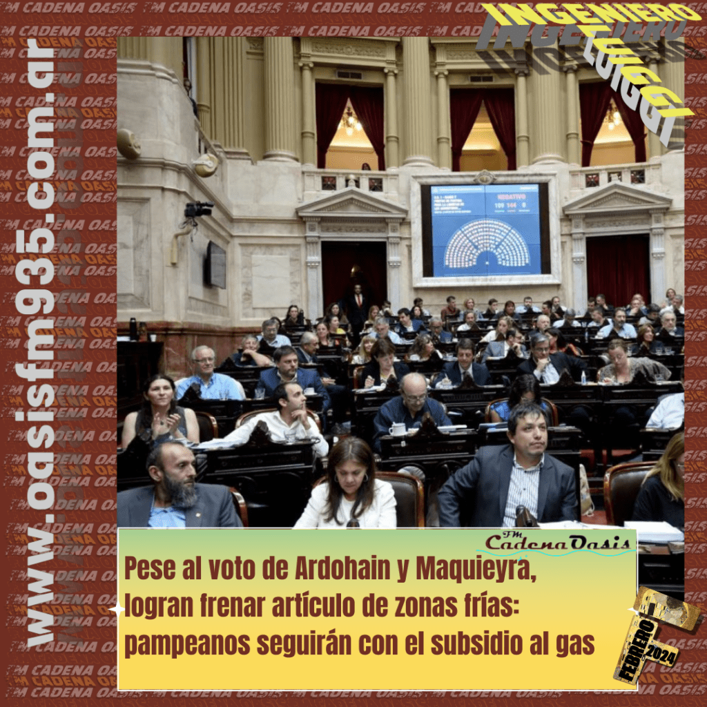 Pese al voto de Ardohain y Maquieyra, logran frenar artículo de zonas frías: pampeanos seguirán con el subsidio al gas