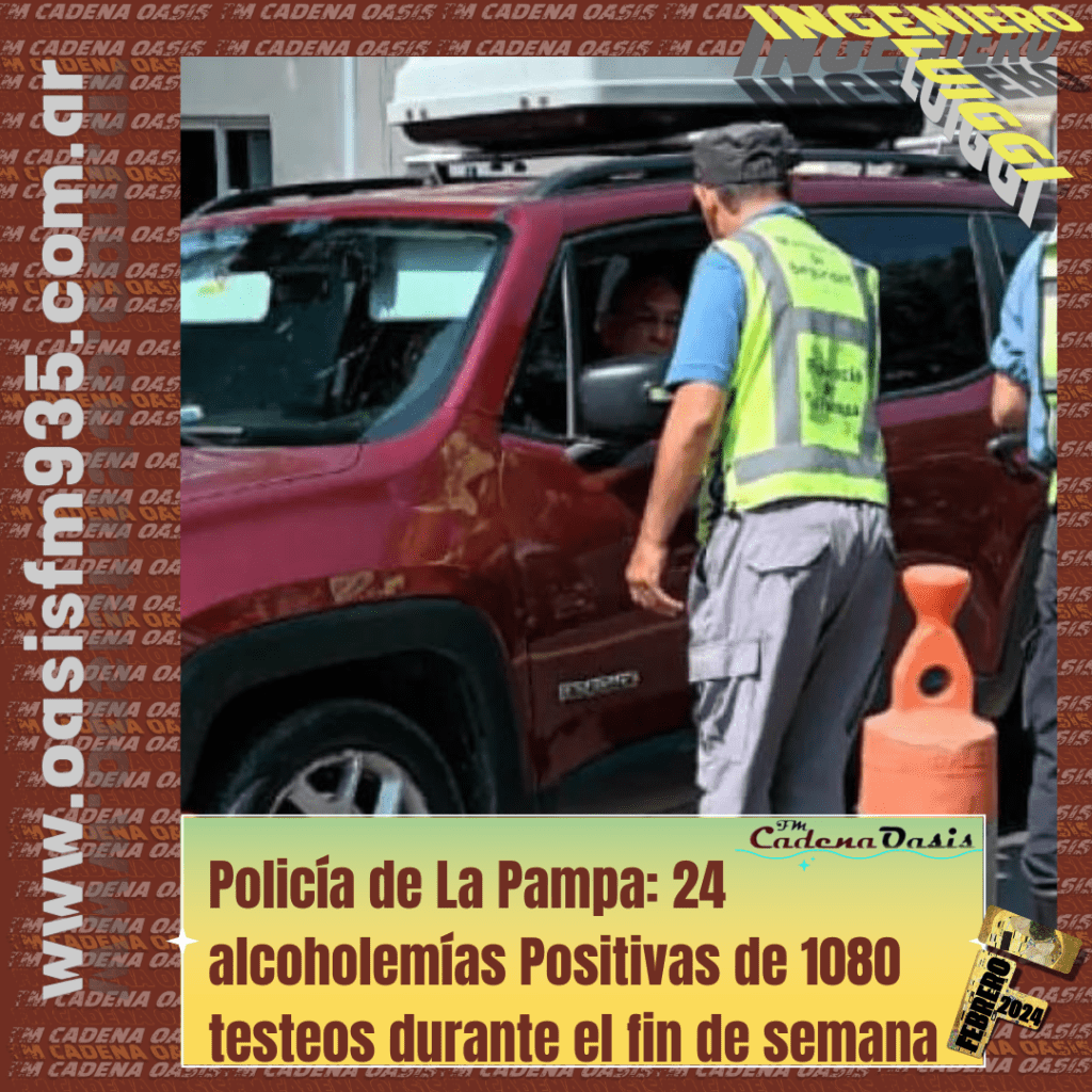 Policía de La Pampa: 24 alcoholemías Positivas de 1080 testeos durante el fin de semana.