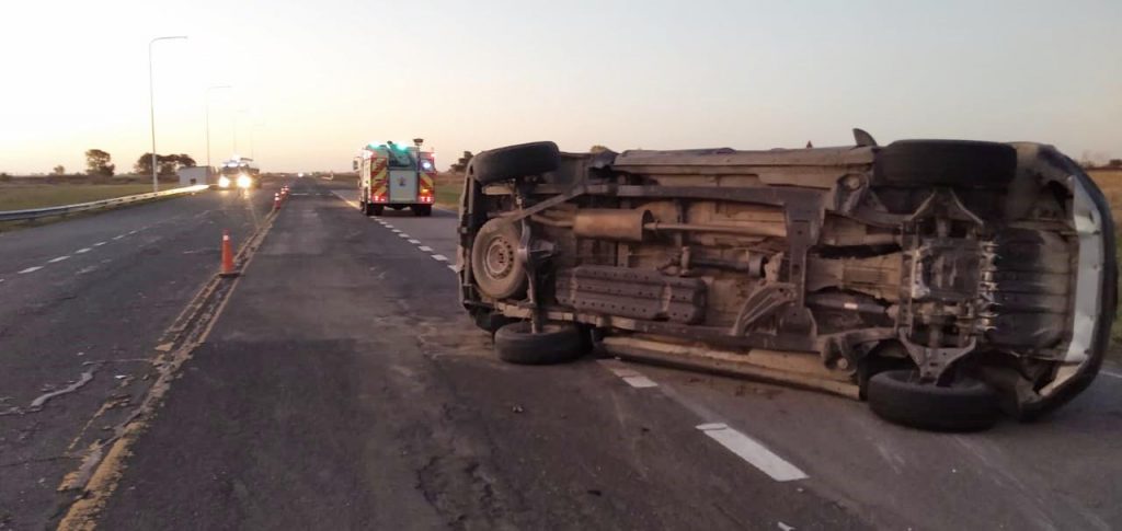 Ocurrió hace minutos en el cruce de ruta nacional 35 y el acceso a Embajador Martini, chocaron dos camionetas, una terminó volcada, trabajan bomberos, policía y personal sanitario local.